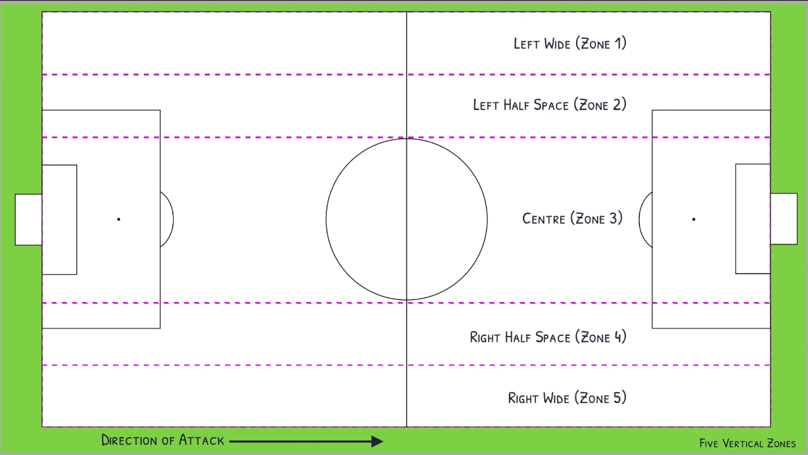 Visualisierung von Bewegungen, Passmustern und strategischen Spielzonen auf dem Spielfeld.